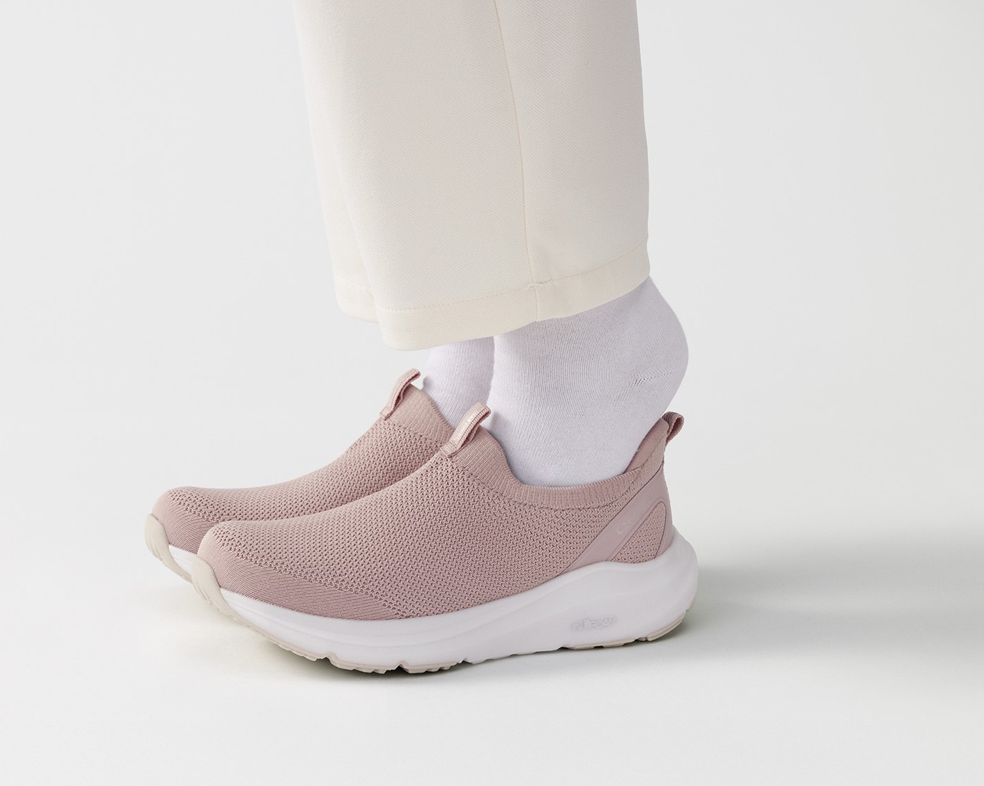 「スパットシューズ」 は、『手を使わずに立ったままスパッと履ける』をコンセプトに、ハンズフリーシューズの先駆けとなる商品として当社が2022年3月に発売いたしました。特許を取得した、靴ベラ状のかかと構造により、手を使わずに「スパッと!」履くことができます。その新感覚の履き心地と便利さで消費者のニーズを捉えて大ヒット。シリーズ累計販売足数500万足※を達成しました。